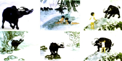 水墨动画突破了动画电影史上传统的“单线平涂”的样式,将国画中的笔情墨趣与电影艺术完美、巧妙地结合在一起,创造出了一种全新的视觉效果,在动画发展史上是一项前所未有的创举。